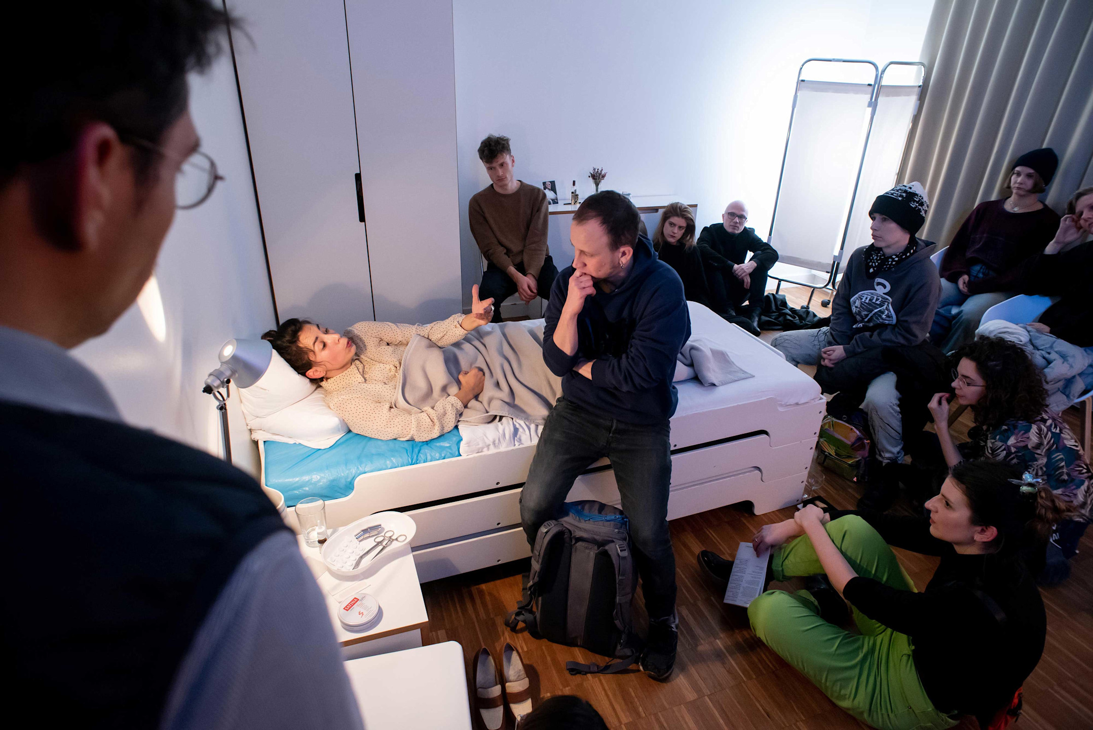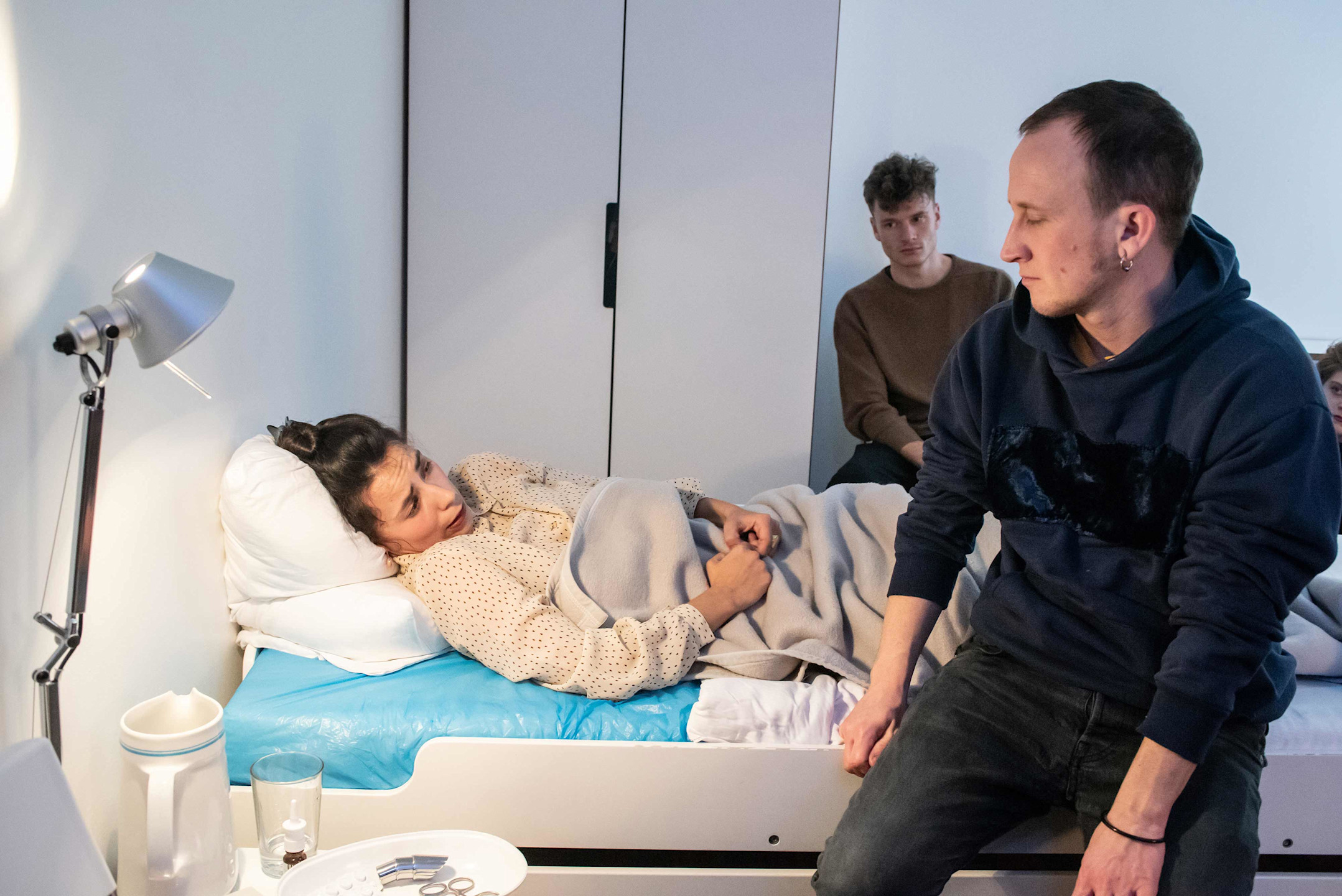 Figuring Age is a ghostly séance, an intimate and intimidating encounter hosted by Boglárka Börcsök. Come and visit Éva, Ágnes and Irén, three elderly Hungarian dancers who are all above 90 years old, in their apartment room on the 5th floor of the CHB. The ladies are waiting for you with tea and biscuits and are happy to meet you to share their stories, their secrets and to perform for you. In exchange, you will help them with everyday tasks, like getting out of bed, getting dressed, going to the toilet. You will exercise your empathy without pity and exorcise your fear of aging and death.