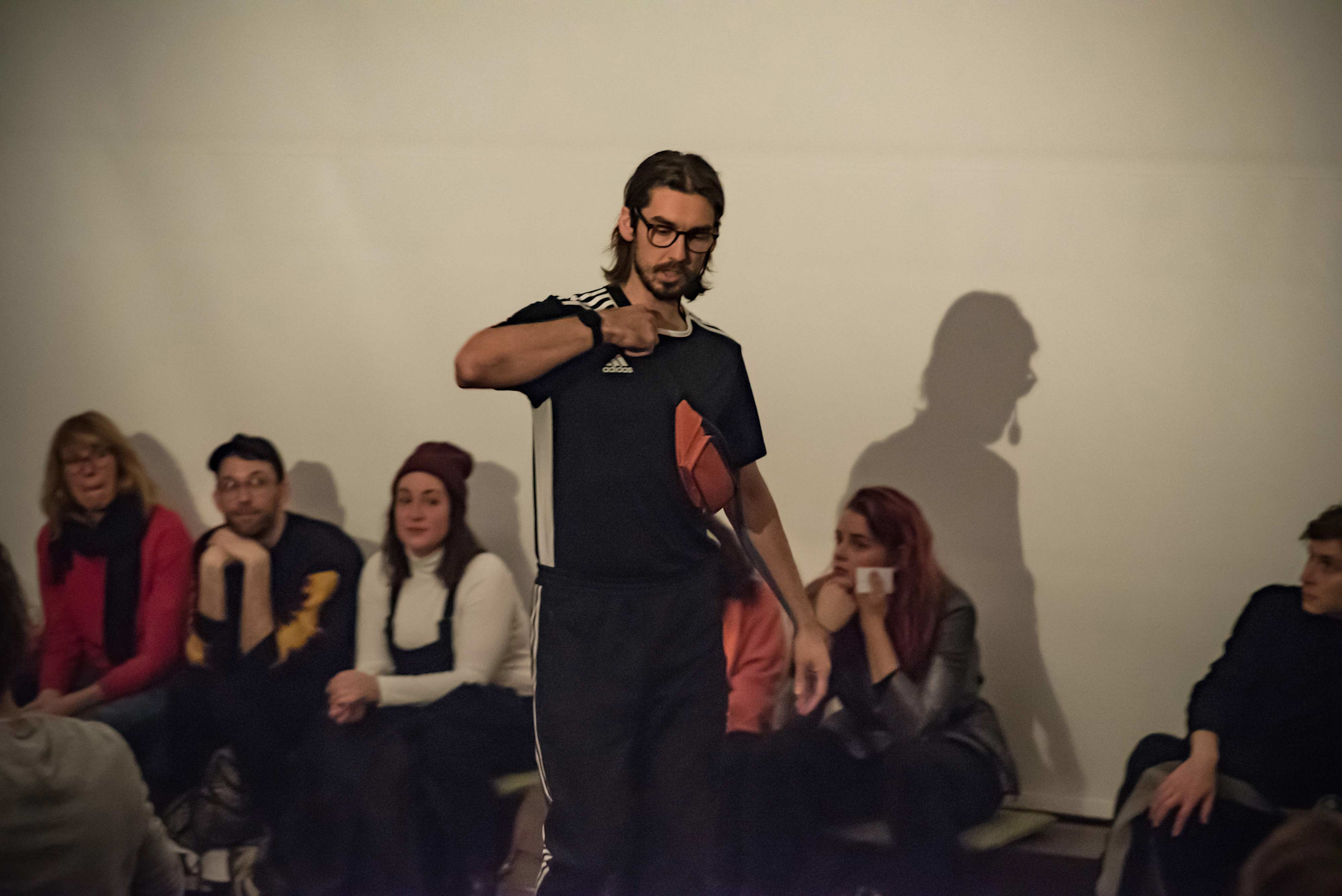 In the age of interconnectedness, there is a tendency to solve our issues on our own, to DIY fix our problems, to google- and youtube-educate ourselves. Instead of contacting a real person first, we do our own research. With the piece “hands-on”, Imre Vass experiments with a bodily approach to knowledge consummation and creates a space where high-speed information can be shared in a soft, caring and comfortable environment.