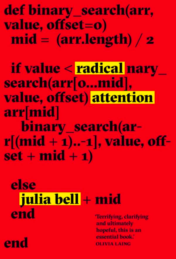 In exchange for our attention, information and entertainment is ever at our fingertips. But at what cost? In this essay, at once personal and polemical, meditative and militant, Julia Bell asks what has been lost in this trade off. How can we reclaim our attention? In a world of infinite distraction, how can attention become radical?